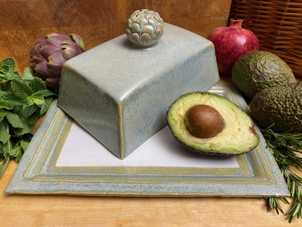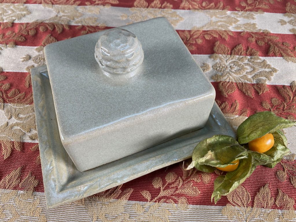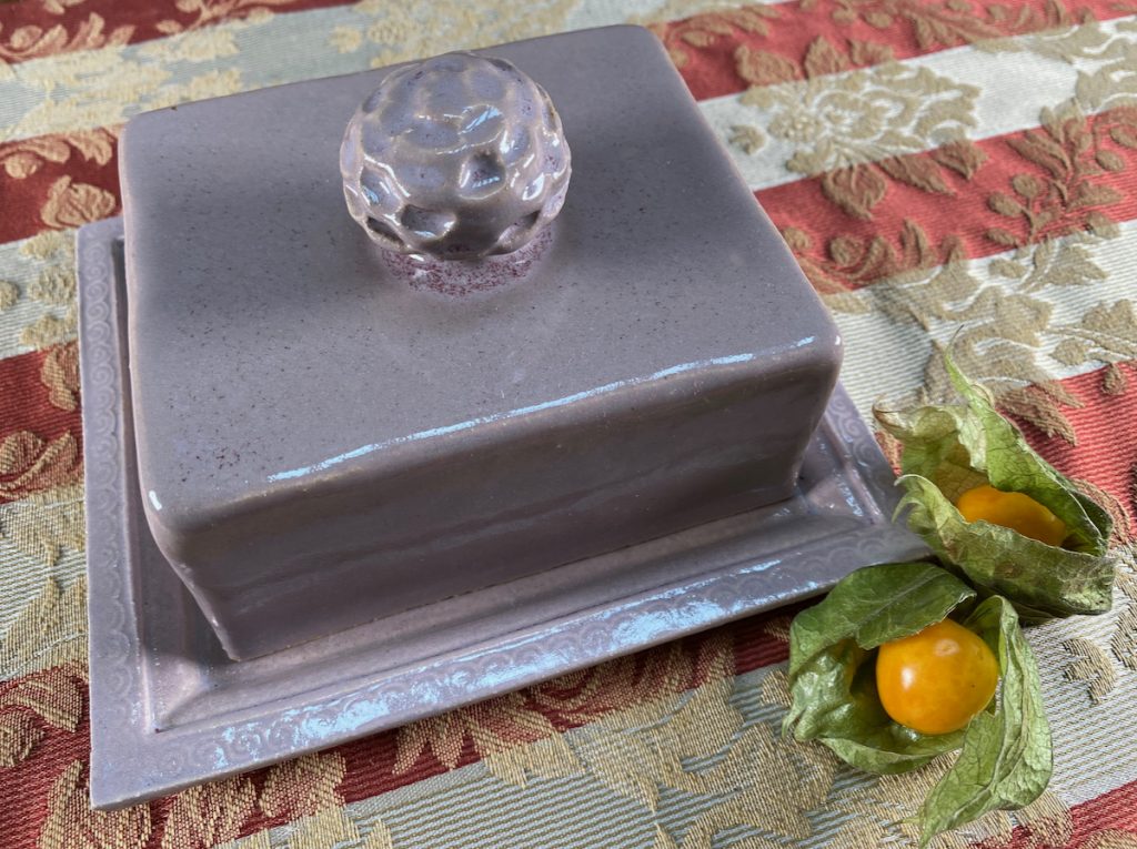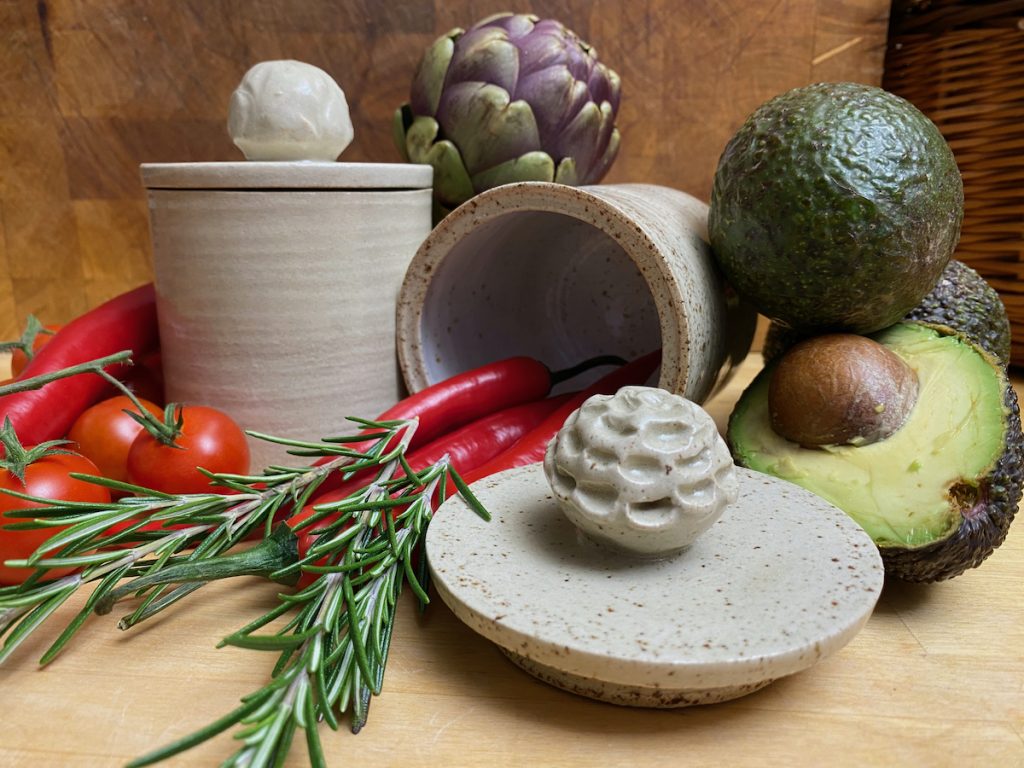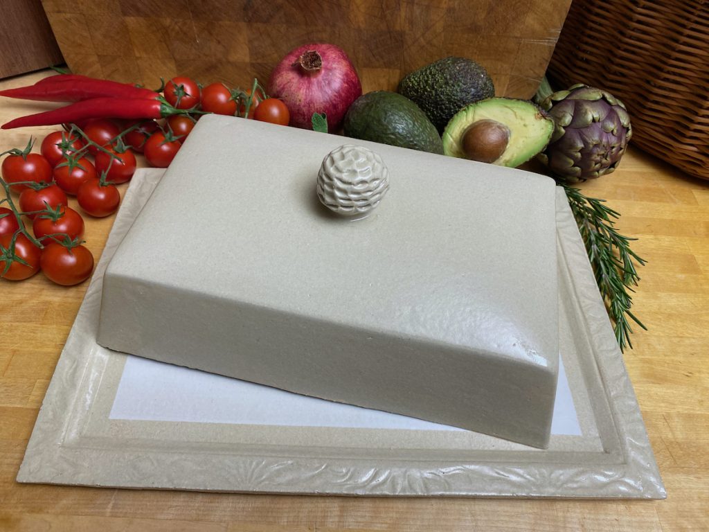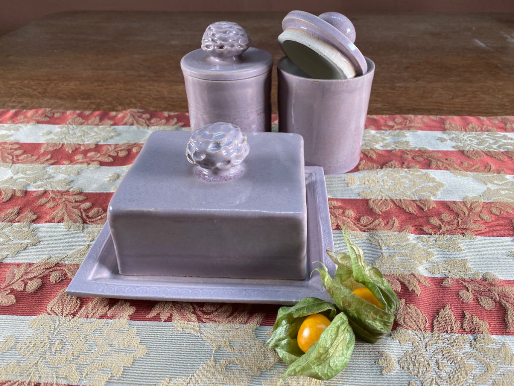Meine Spezialität sind vor allem Gefäße mit Deckel: Dosen aller Größen – Butterdosen, Vorratsdosen, Teedosen, oder was einem noch so in den Sinn kommt, wo ein Deckel drauf soll – und meine schönen wie praktischen Servierglocken. Alle meine Gefäße und ihre Deckel werden aus Ton hergestellt und sie sollen nicht nur gut aussehen, sondern sie sind auch alle im praktischen Einsatz erprobt. So passen z.B. meine Servierglocken in allen Kombinationen perfekt in den Kühlschrank – endlich kann auf die Frischhaltefolie verzichtet werden und alles wird auf einer schönen Keramikplatte angerichtet, unter der passenden Haube frisch gehalten.