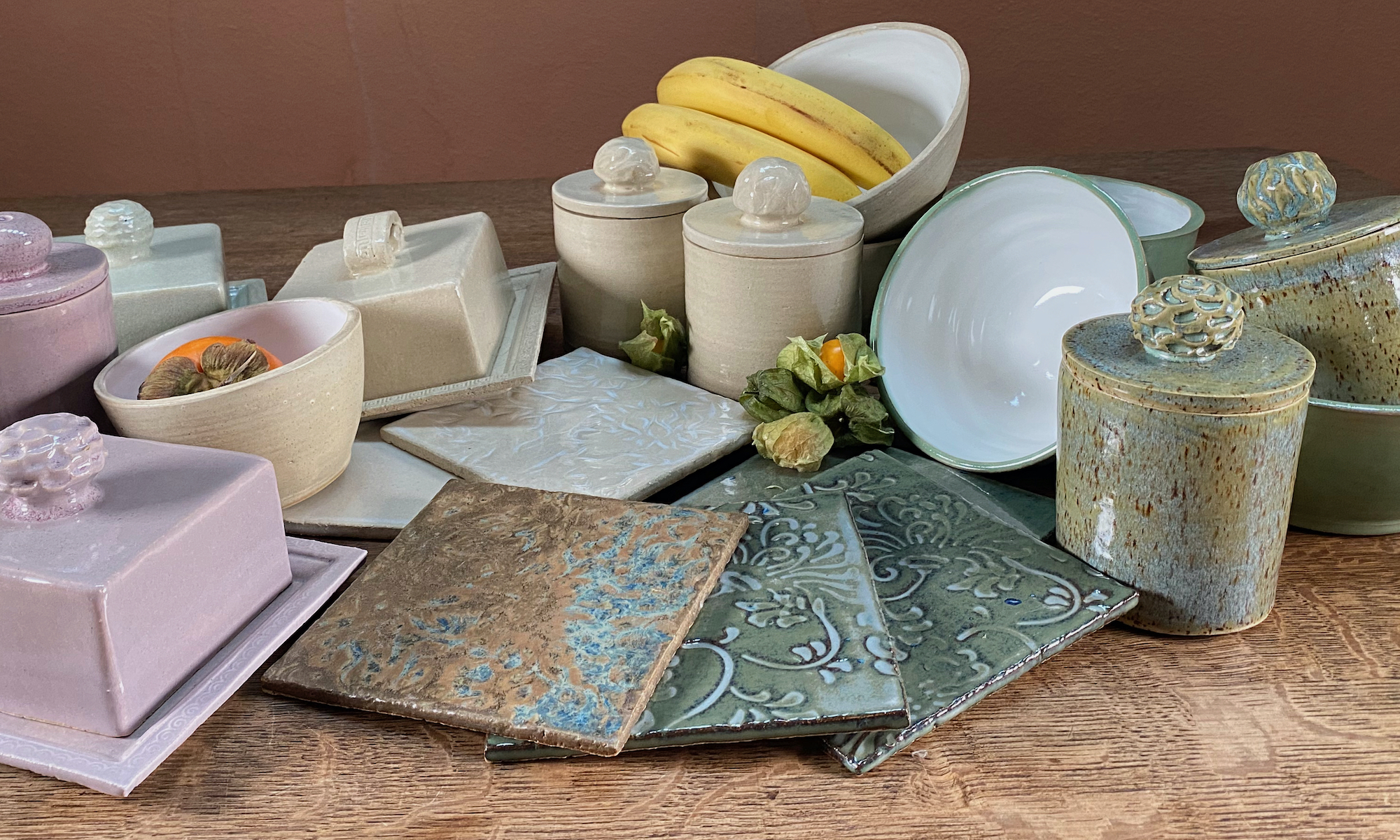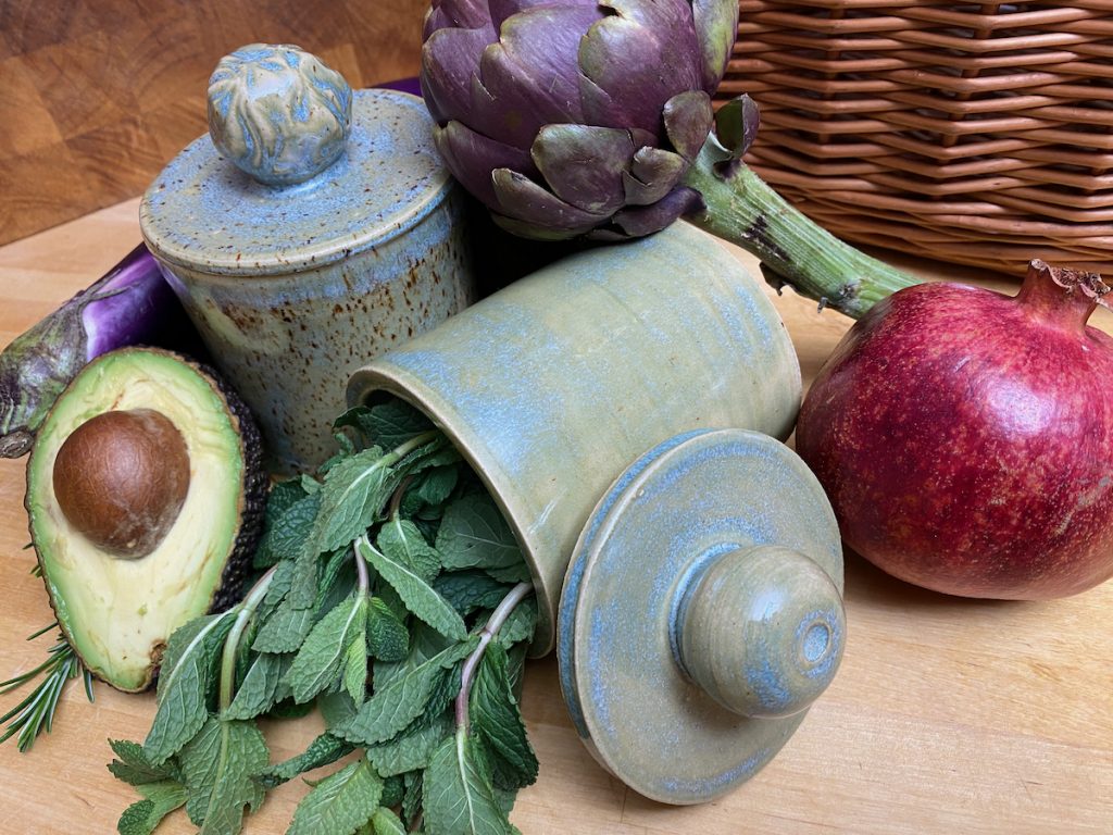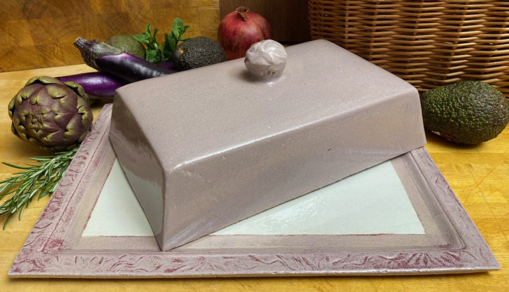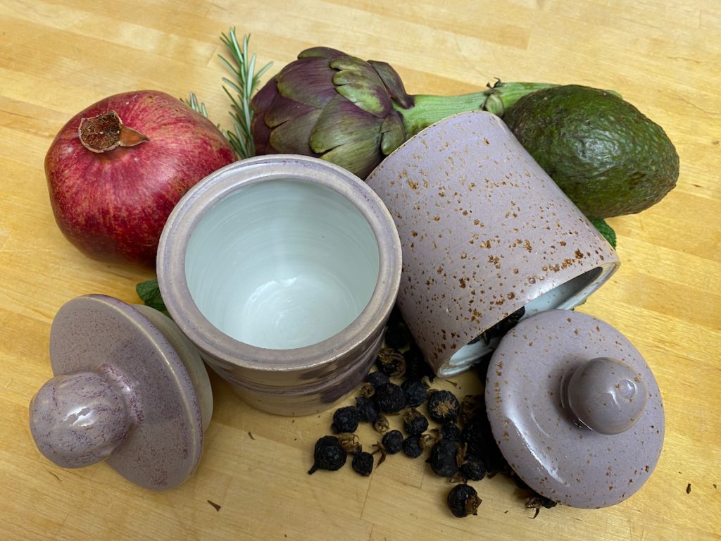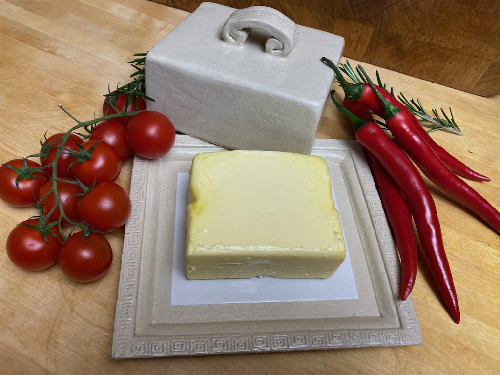 Meine Spezialität sind vor allem Gefäße mit Deckel: Dosen aller Größen – Butterdosen, Vorratsdosen, Teedosen, oder was einem noch so in den Sinn kommt, wo ein Deckel drauf soll – und meine schönen wie praktischen Servierglocken. Alle meine Gefäße und ihre Deckel werden aus Ton hergestellt und sie sollen nicht nur gut aussehen, sondern sie sind auch alle im praktischen Einsatz erprobt. So passen z.B. meine Servierglocken in allen Kombinationen perfekt in den Kühlschrank – endlich kann auf die Frischhaltefolie verzichtet werden und alles wird auf einer schönen Keramikplatte angerichtet, unter der passenden Haube frisch gehalten.
