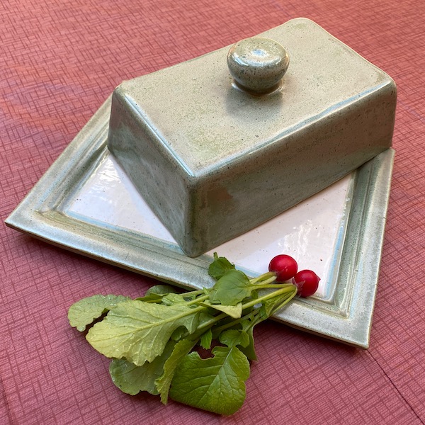 Die Oberfläche Green Tea ist eine bunte Salbeigrünglasur, die stellenweise ein glänzendes blaues Finish erzeugt.